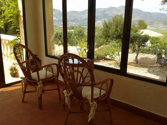 At our Finca Villa Lliber we have a bedroom for two with your own bathroom and entrance. Next to you room you have coffee- and tea making facilities and a little sitting area. Outdoor you have your own terrace, overlooking the pool and the valley and an outdoor kitchen. At your service are a fridge and stove with oven.