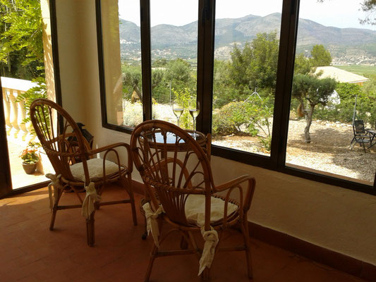 En la casa principal de nuestra Finca Lliber ofrecemos una habitación doble con su propio cuarto de baño y puerta de entrada. El dormitorio tiene aire acondicionado. Al lado de la habitación, se encuentra una pequeña zona de estar con utensilios para hacer café y té. En el exterior, dispones de tu propia terraza, al lado de la piscina y con vistas al valle. Si viajas en grupo de 4, y no te importa compartir el cuarto de baño, existe la posibilidad de añadir otra habitación doble a tu reserva. Envíanos un email con tus fechas y peticiones y nosotros haremos lo posible para atenderte. Esta una cocina exterior, con una nevera y estufa para ti.