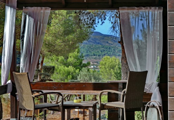 De Cabaña geeft de meeste privacy omdat je een geheel eigen 'optrekje' hebt vlakbij onze finca. De Cabaña bevat een woonkamer, keuken, slaap- en badkamer met inloop douche en toilet en een overdekt- en een buiten terras. Je hebt een eigen opgang naar jouw appartement. In de slaapkamer is airconditioning aanwezig.